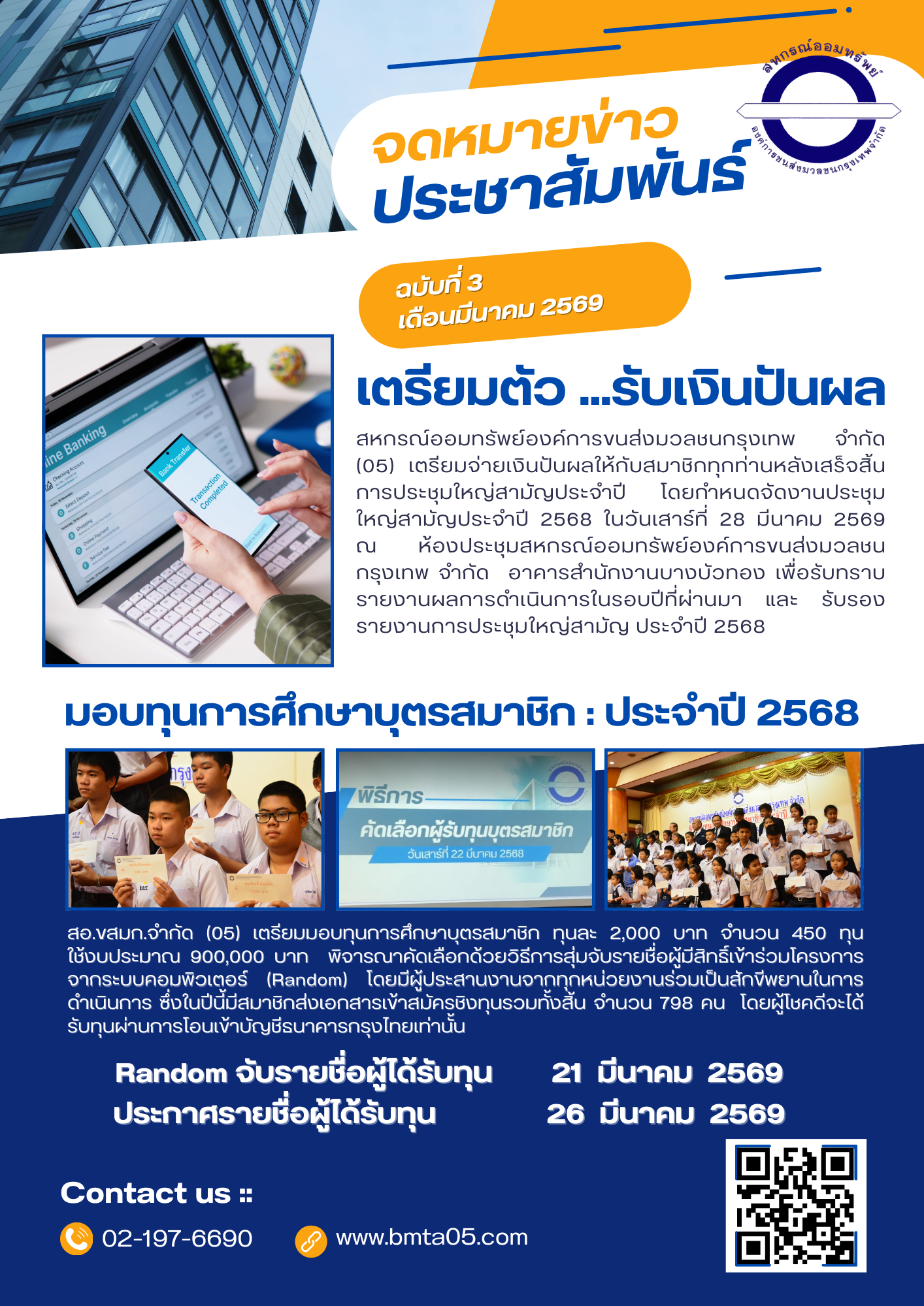 สีน้ำเงิน สีส้ม ทางการ โมเดิร์น ประชาสัมพันธ์ ประกาศ จดหมายข่าว
